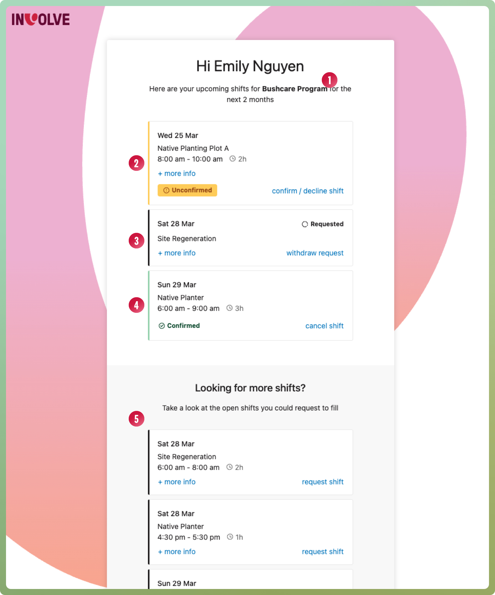 - Withdraw an open shift request before it's confirmed by your volunteering manager