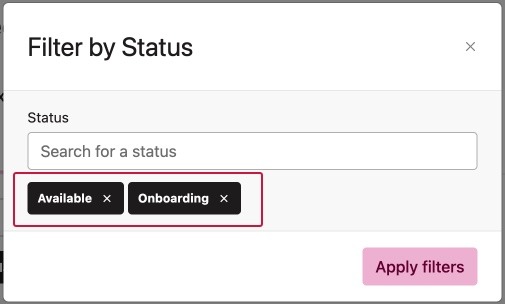👉 For example, you may want to filter out any volunteers that are set as Unavailable. You can do this by entering all of the active and pending statuses