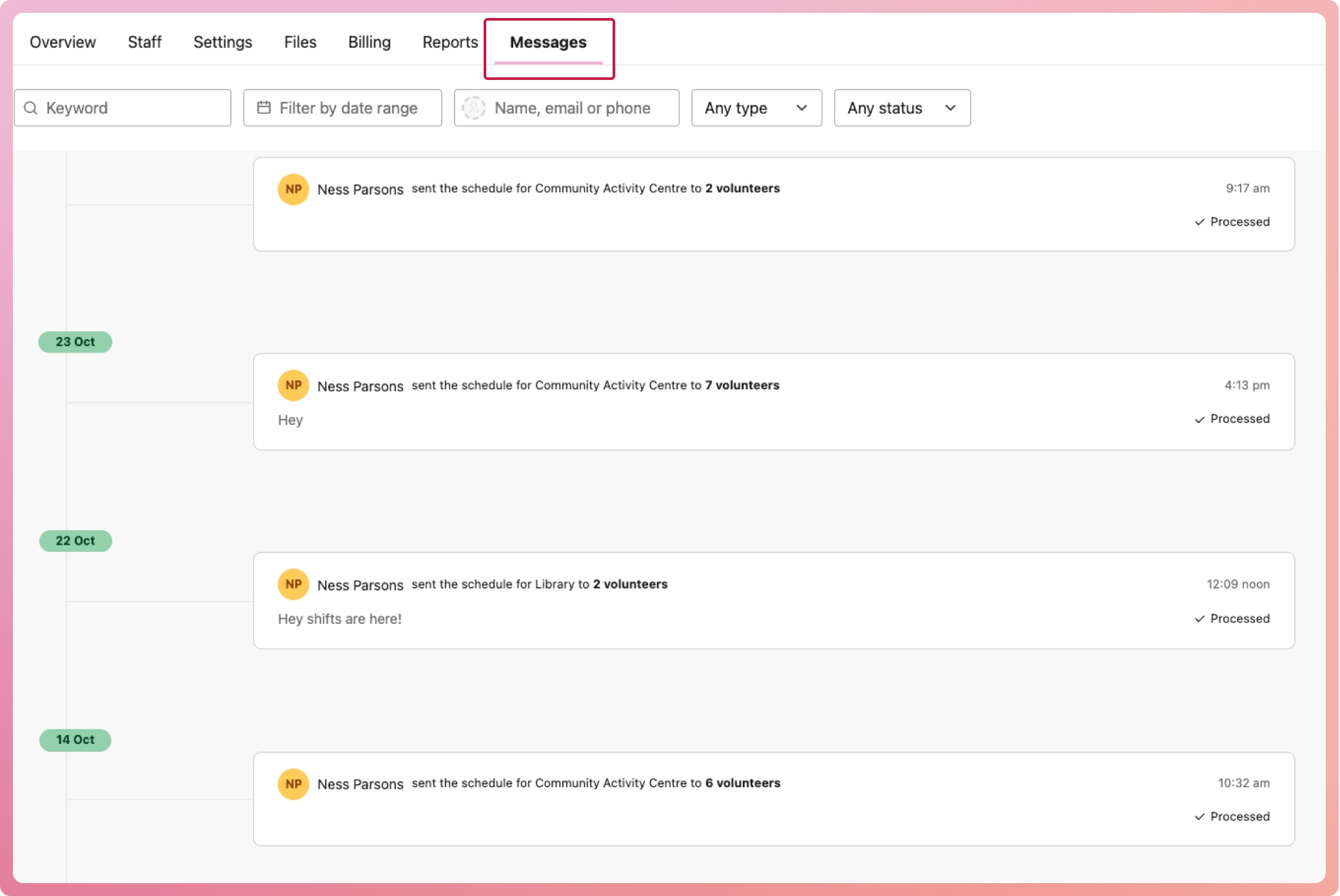 ✨ Volunteer Message History (Organisation level)