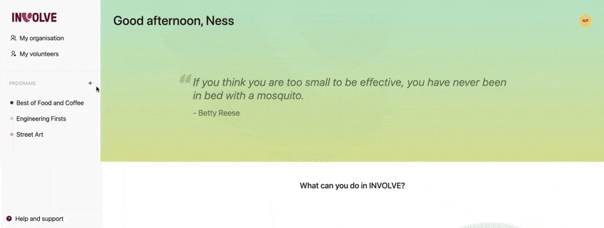 Note: only Organisation Administrators, Billing Owner and Volunteer Managers can add new programs
