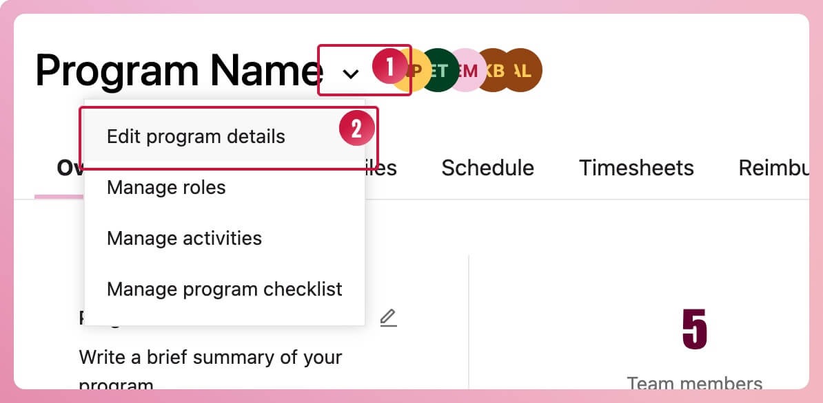 Locate the box titled 'Program team'