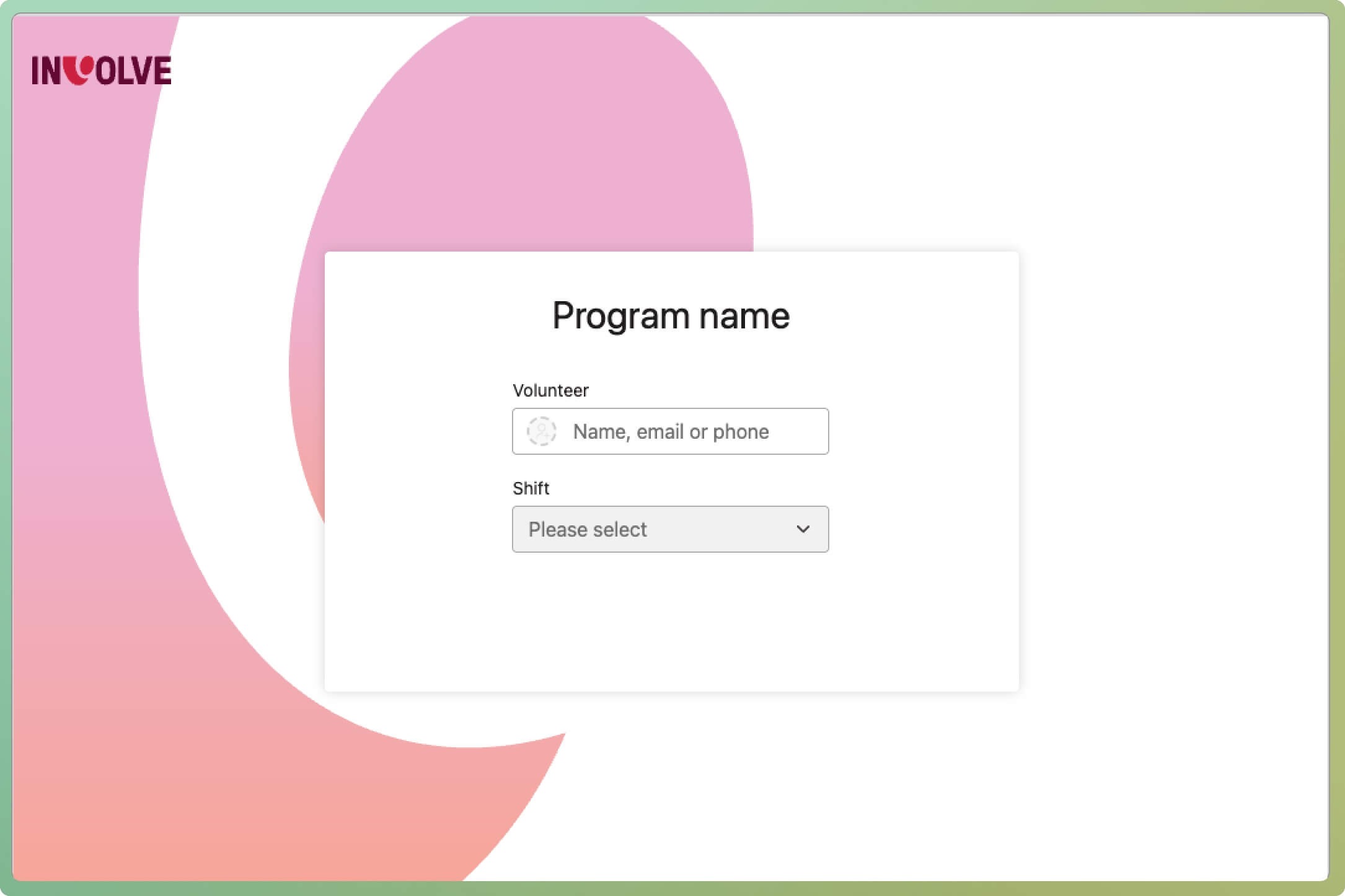 Select the shift dropdown field. Today's shifts that your volunteer manager has scheduled will appear, select the scheduled shift. If there are no shifts, select the Unscheduled / Shift Not Found option.